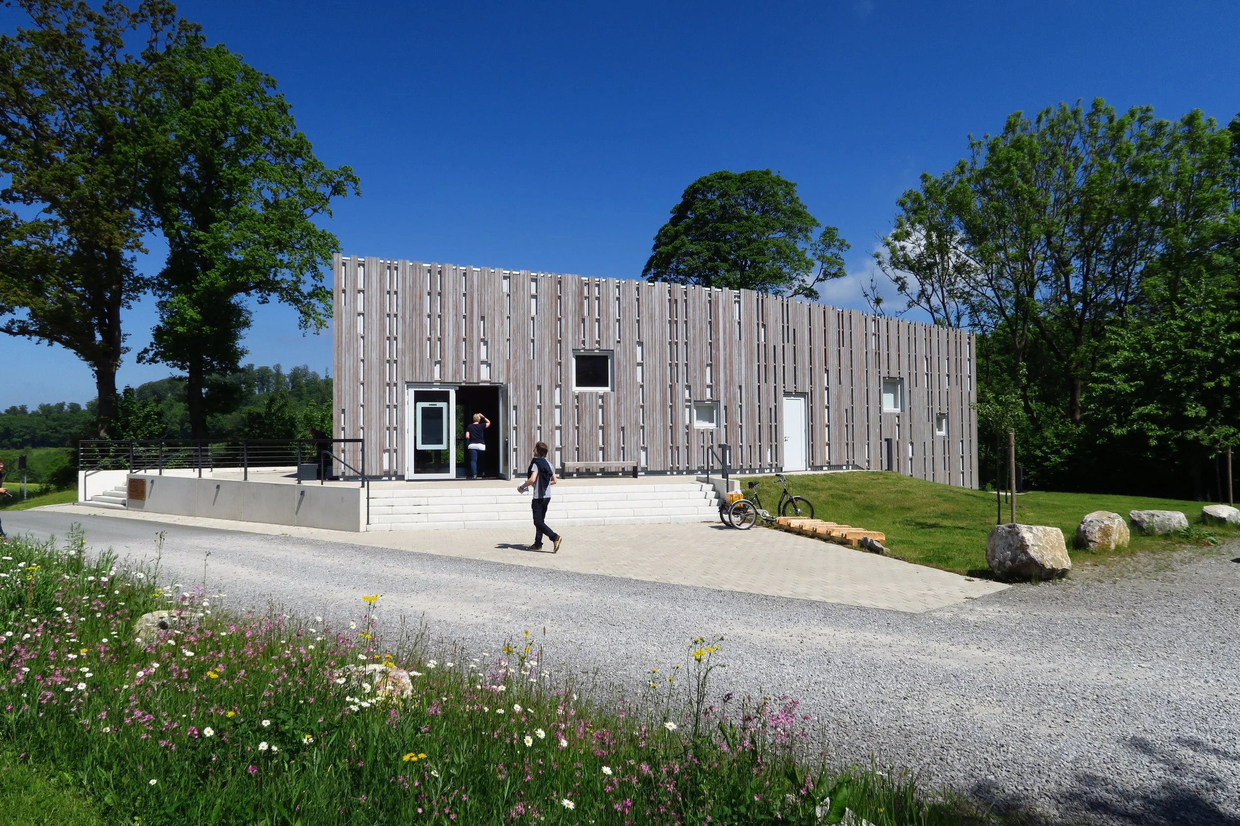 Neben dem „Kloster der Klänge“ steht ein neu eröffnetes multimediales Informationszentrum. „Wir haben uns gefragt, wie man sich am besten auf die Begegnung mit spirituellen Orten vorbereiten kann“, erklärt Jansen. Als Homage an die Benediktiner-Regel „Höre mein Sohn, höre auf die Weisung des Meisters, neige das Ohr deines Herzens...“ wurde die sich drinnen entfaltende Bilderwelt mit besonderen Klängen untermalt. Heraus kam eine Landkarte, die auf den Boden projiziert wird und die beim Betreten der angezeigten Ortsnamen ein multimediales Bild-Ton-Erlebnis an den Wänden in Gang setzt.